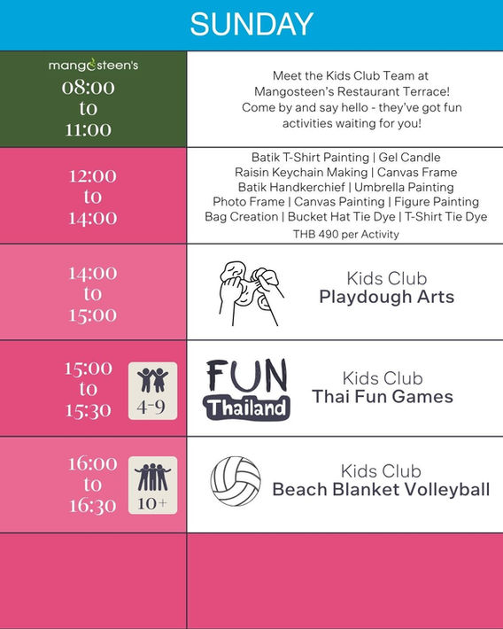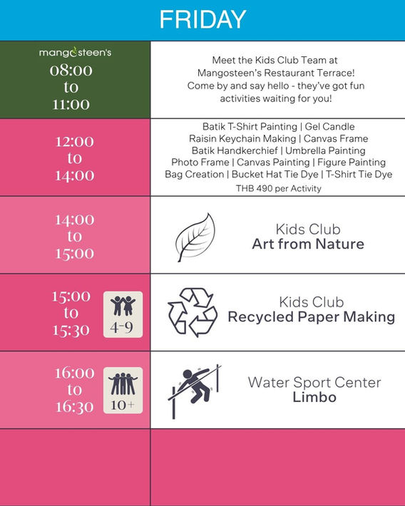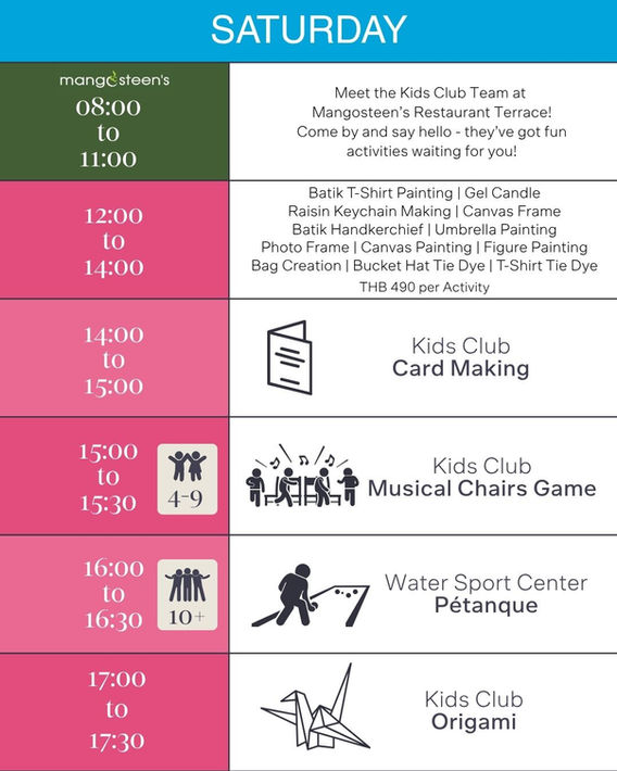 Kids Club Activity Schedule